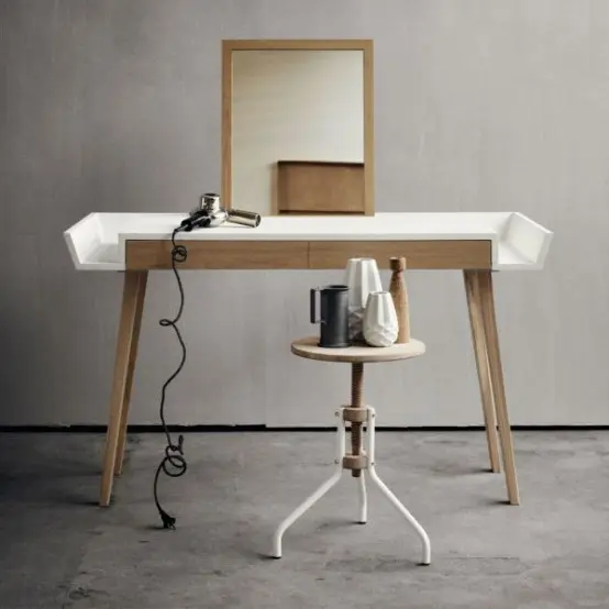 A dressing table is an important thing for every girl and some of us spend hours and hours in front t of the mirror. That’s why today we’ve rounded up some very cool dressing table designs for you, girls! Here you’ll find a piece for every style and taste. For minimalism-lovers, there are models of wood with minimum of décor, sleek and lacquered surfaces. If you love vintage or retro – there are beautiful and exquisite tables, gilded and with decorations. In case of lack of space you’ll love transformable dressing tables or multifunctional ones which can fulfill the functions of a desk or a side table at the same time. Scroll down to enjoy different dressing tables below and choose something for your home!