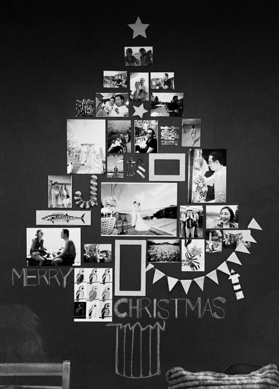 A wall-mounted Christmas tree made of photos and decorated with lights is a very personal and intimate idea.